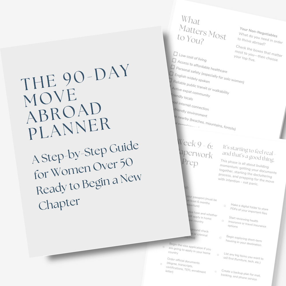 As you start imagining your life abroad, the 90-Day Move Abroad Planner can help you turn those dreams into a doable plan—for just $17.